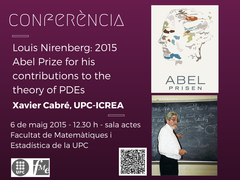 El premi Abel 2015 ha estat atorgat a John F. Nash, Jr. and Louis Nirenberg. Aquest darrer va ser el "pare acadèmic" de Xavier Cabré, professor del Departament de Matemàtica Aplicada I de la UPC i ICREA Research Professor.