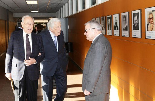 El Doctor Pere Mir amb el professor Mas-Colell a la sala d'actes de l'FME, en l'acte de reconeixement de la 1a promoció de les Beques del Programa CiMs-Cellex de Batxillerat Internacional en matemàtiques i Ciències. Gener del 2013